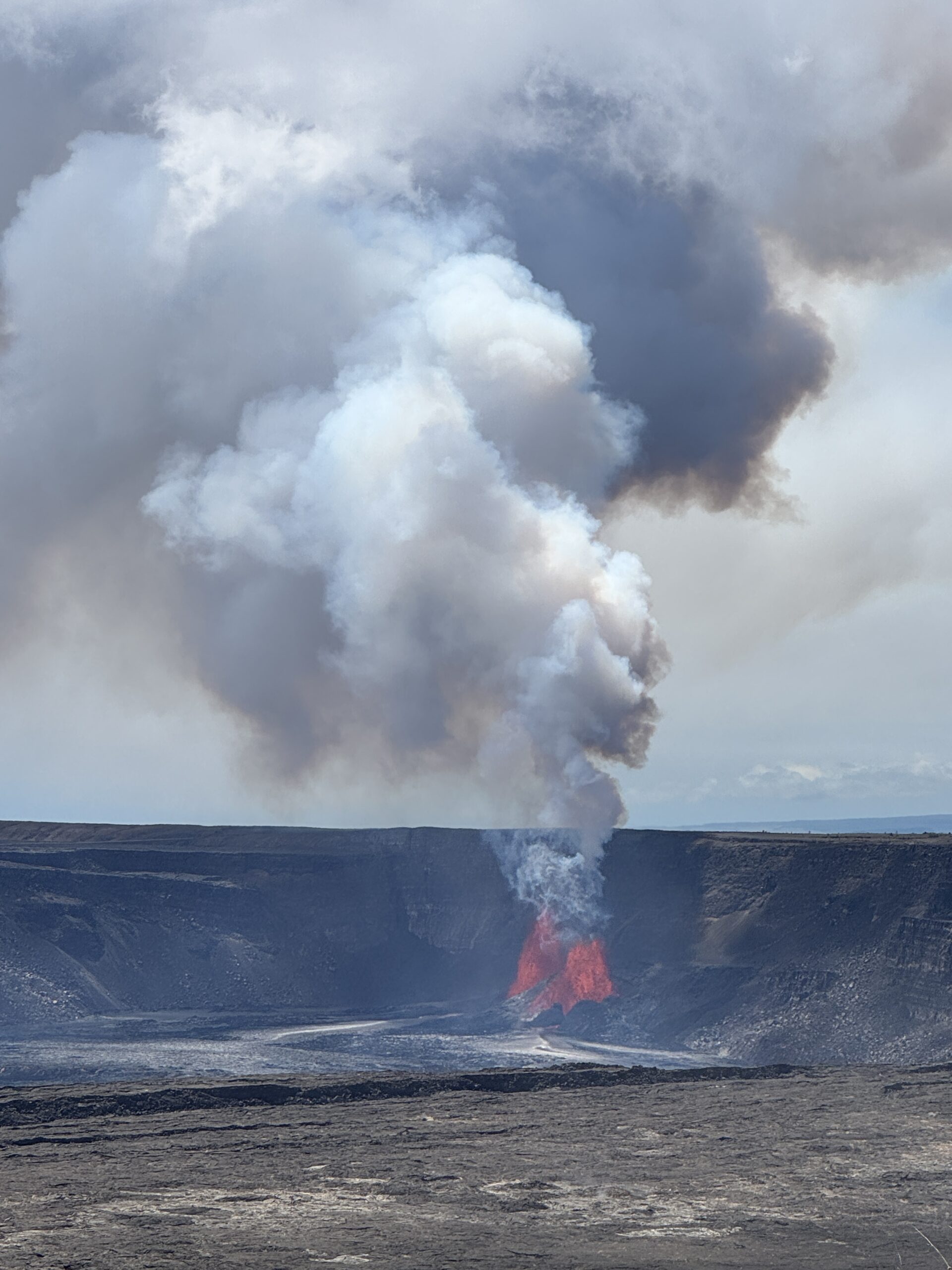 Kilauea erupted overnight, so when we woke up, we made the trip back to Volcanoes National Park to see the lava. Joel stayed at the house, too sick to care about the volcano, but Adam managed to come along to see it. It was one of the coolest things I’ve ever seen in my life. Seeing red-hot lava blasting out of a volcano with my own eyes was never on my bucket list, nor was it something I thought I’d ever get to experience, and I was amazed to witness it.